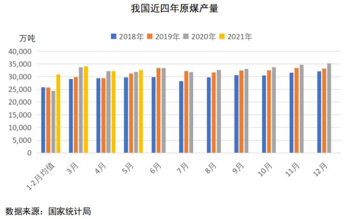 商品的價(jià)格是供求關(guān)系來決定的,煤炭也逃不出這樣的關(guān)系。自2020年下半年開始,受安監(jiān)、環(huán)保及“倒查20年”等一系列因素影響,我國(guó)煤炭產(chǎn)量始終處于低位。盡管在2020年4季度冬季保供階段產(chǎn)量有所提升,但2021年3月,產(chǎn)量再次受限。在產(chǎn)業(yè)固定資產(chǎn)投資連年受限以及“青山綠水”等因素的影響下,合法產(chǎn)能已經(jīng)處于滿產(chǎn)狀態(tài)…