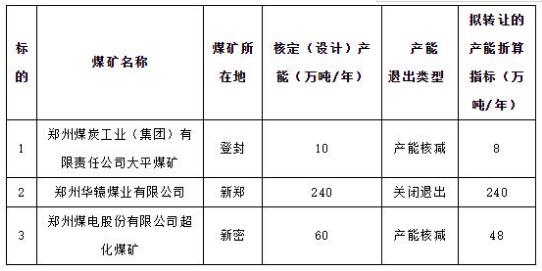 河南省3家煤礦轉(zhuǎn)讓296萬噸/年煤炭產(chǎn)能指標(biāo)