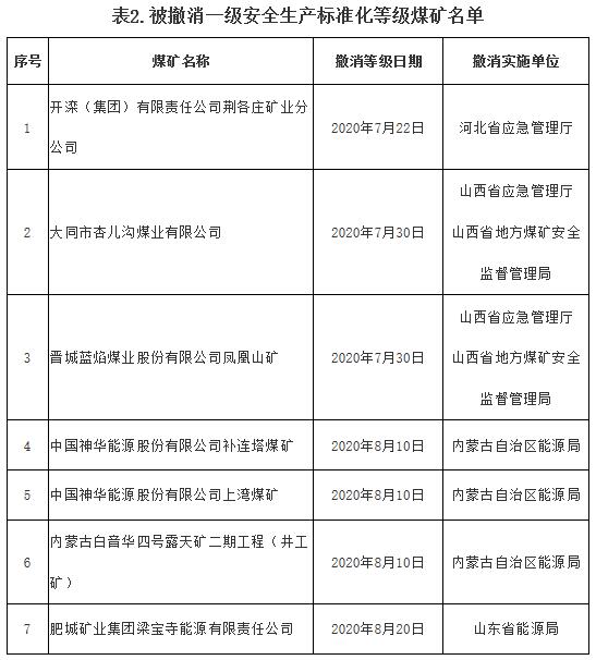 開灤(集團(tuán))有限責(zé)任公司荊各莊礦業(yè)分公司等7處煤礦一級(jí)安全生產(chǎn)標(biāo)準(zhǔn)化等級(jí)被撤消,詳見附表2。