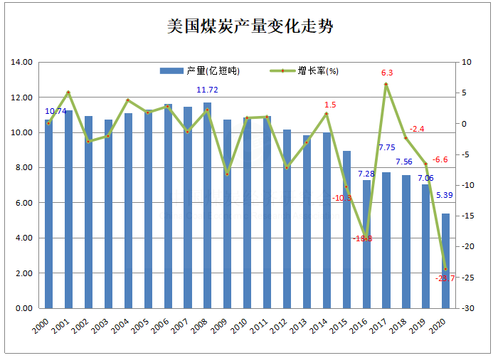另據(jù)上月末美國能源信息署(EIA)發(fā)布的能源論評( Monthly Energy Review)報(bào)告數(shù)據(jù)顯示,2020年美國煤炭產(chǎn)量為5.39億短噸(約合4.89億噸),首次跌破5億噸,同比減少1.67億短噸,下降23.7%。其中,12月份煤炭產(chǎn)量4643.6萬短噸,同比下降12.7%。