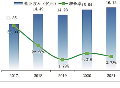圖1 2017-2021年“500強(qiáng)”總營業(yè)收入(萬億元) |