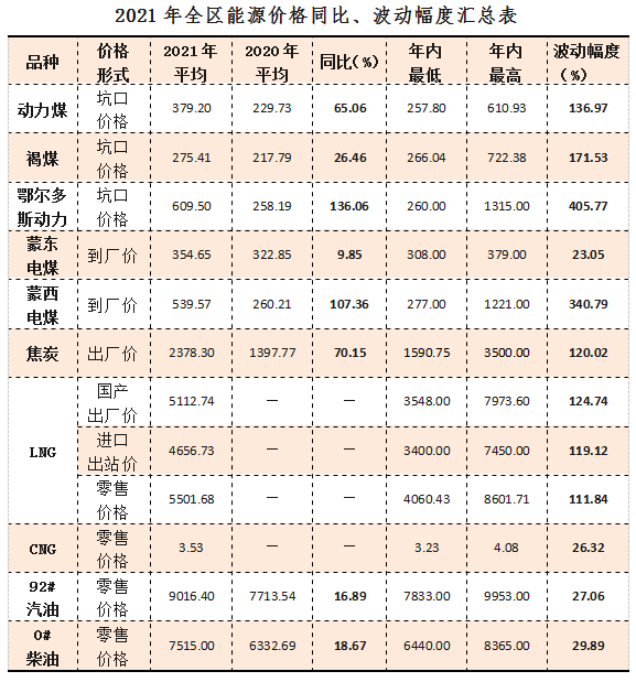 2021年,動(dòng)力煤價(jià)格大起大落,整體價(jià)格水平高于上年同期。1-12月,全區(qū)動(dòng)力煤平均坑口價(jià)格為379.20元/噸,同比上漲65.06%?